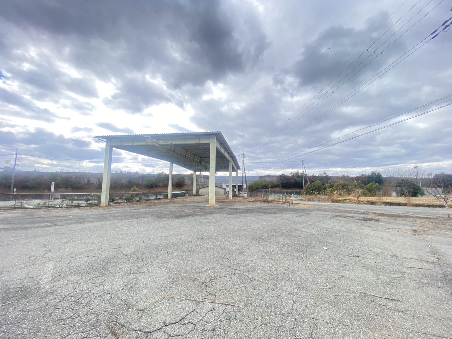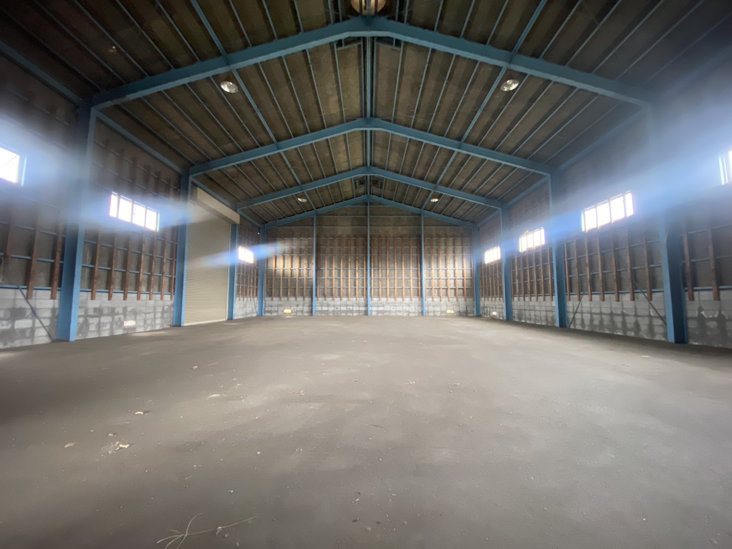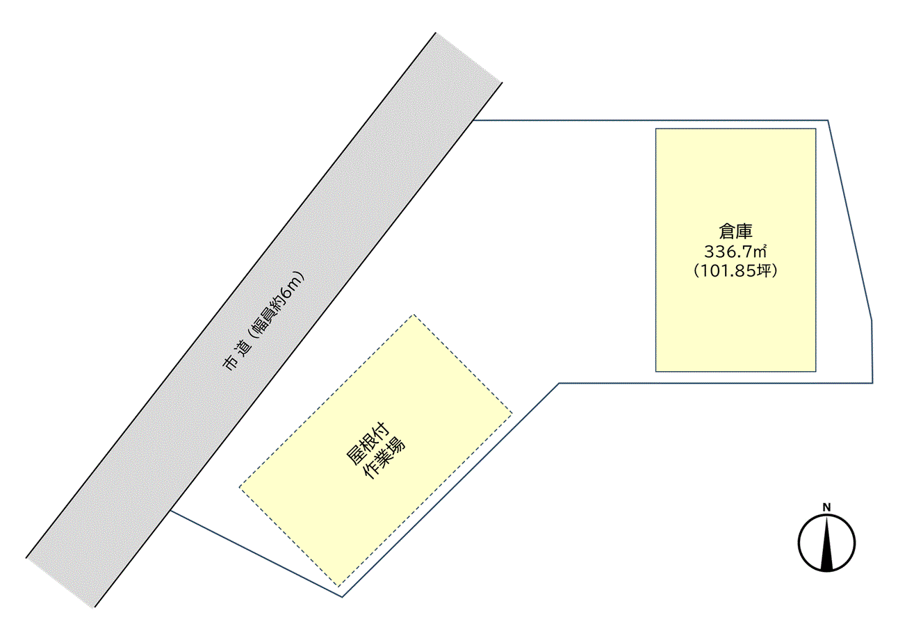 418坪の広々とした敷地に102坪の倉庫、倉庫入り口のシャッターは電動シャッターです!