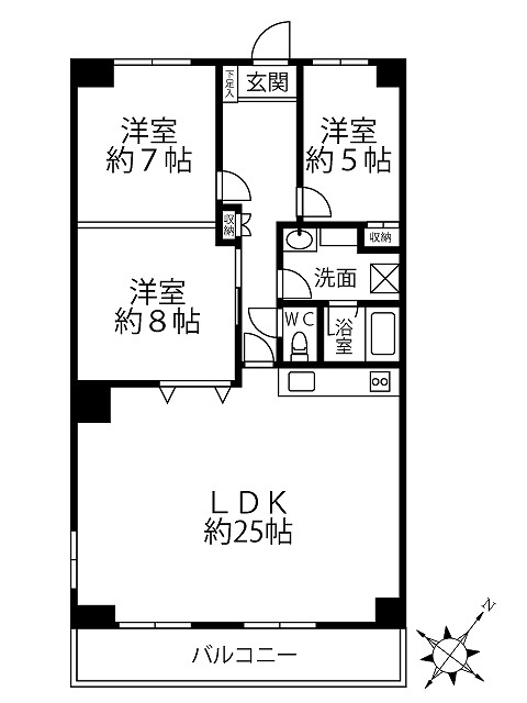 ■LDKは広々25帖の3LDK(続き間で利用の場合、2LDK)の間取り