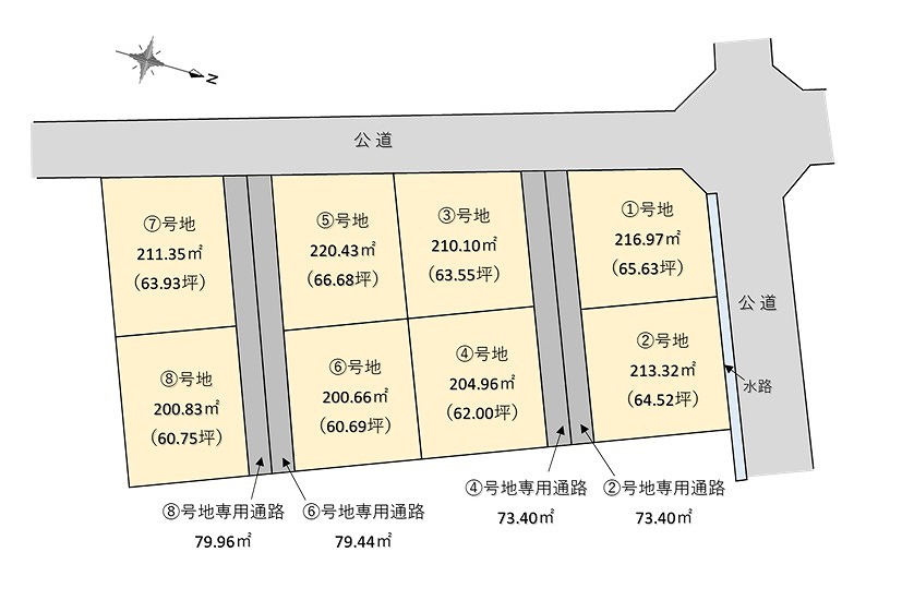 ・②号地通路及び④号地通路、⑥号地通路及び⑧号地通路は共有使用出来るよう別途取決め予定(通路協定等)
